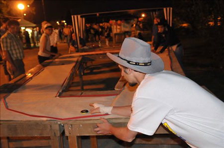 Richiamando il gioco delle biglie, con dei tondini creati apposta per l'occasione dalla coppia d'inventori Massimo Lazzarino e Francesco Emanuel Pellitteri, in un percorso uguale a quello di piazza Alfieri, i nove finalisti dopo ben 4 partenze false hanno dato spettacolo con lotta serrata, soprattutto fra Canelli e Moncalvo, con finale a cardiopalma, giocato sul millimetro.
