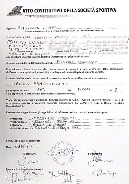 Era una fredda serata quella del 31 dicembre 2004, una serata così lunga che terminò nel nuovo anno. Così, il 1° gennaio 2005, sei indomiti supereroi firmarono l'atto costitutivo del "Circolo Fantasticlub", poi diventato negli anni ASD Fantasticlub, sorto dalle ceneri del defunto Tanaro Club, associazione nata col nome di "Tanaro Pulito" che aveva operato nel borgo sud di Asti fin dal 1988. Presidente Massimo "Max" Lazzarino, vice presidente Francesco "QiQQo" Pellitteri, le due "eminenze grigie anzi, verdi" del Fantasticlub.